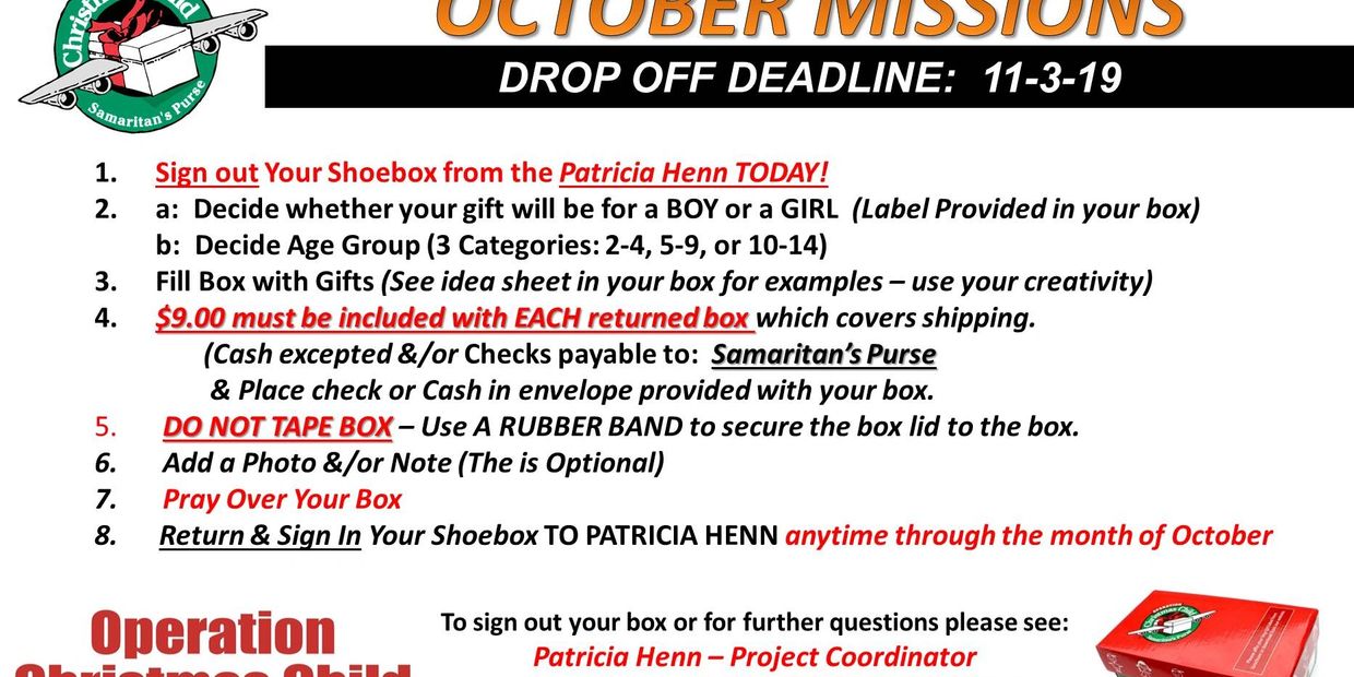 Samaritan’s Purse and Place check in envelope provided with your box.